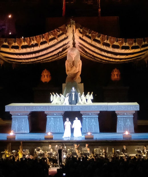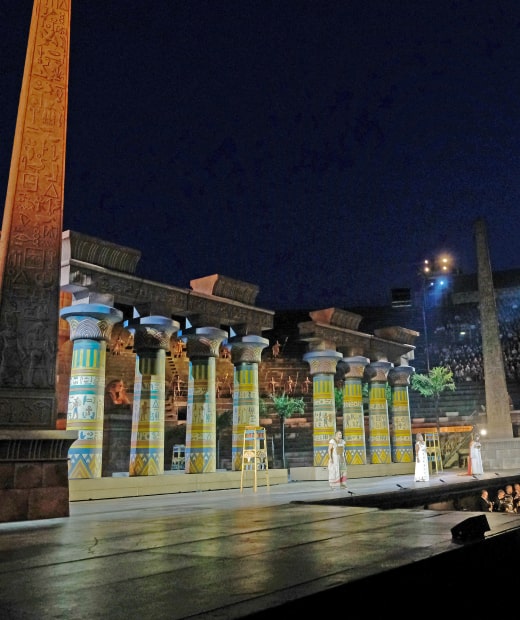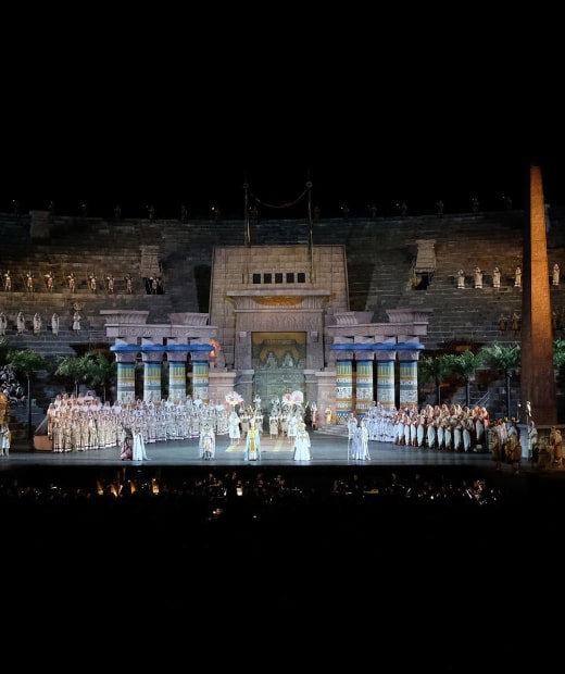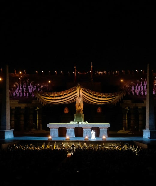 «Gloria all’Egitto» e ad Aida, opera regina dell’anfiteatro, che (dal 10 agosto al 5 settembre) verrà proposta per cinque recite nell’allestimento del 1913 con scene di Ettore Fagiuoli. Recuperato nel 1982 da Gianfranco de Bosio, lo spettacolo (divenuto il più longevo della storia areniana) vi permetterà di immergervi nelle atmosfere vintage che, a inizio Novecento, accompagnarono la creazione del Festival stesso.