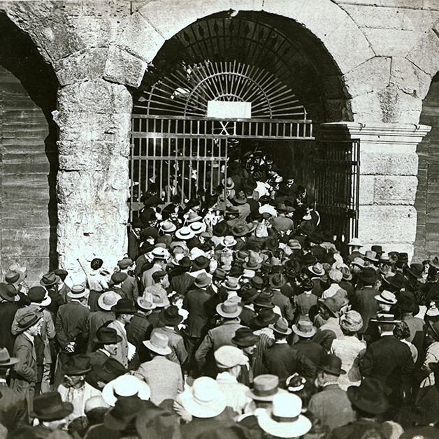 Das Festival Lirico in der Arena di Verona wurden am 10. August 1913 mit der Uraufführung von Aida im Auftrag des veronesischen Tenors Giovanni Zenatello und des Theaterimpresarios Ottone Rovato anlässlich des hundertsten Geburtstags von Giuseppe Verdi ins Leben gerufen. Seit über hundert Jahren (mit Ausnahme von zwei kurzen Unterbrechungen während der großen Kriege und der Pandemie) verwandelt sich das römische Amphitheater jeden Sommer in das größte Open-Air-Opernhaus der Welt.
