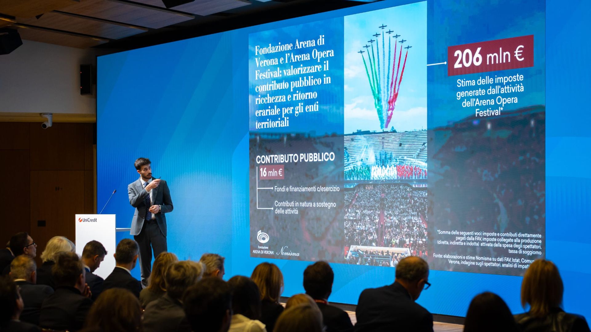 Un pomeriggio di approfondimento, aperto a tutti, durante il quale sarà presentato lo studio realizzato da Nomisma sull’impatto economico, sociale e turistico dell’Arena di Verona Opera Festival. Rappresentanti del mondo economico e istituzionale si confronteranno sui risultati dell'indagine per definire ruolo, sfide e responsabilità della cultura come motore dell’economia e dello sviluppo del territorio. Il pomeriggio proseguirà con un dialogo a due tra Massimo Mamoli, direttore de L'Arena e Bresciaoggi e direttore editoriale di Gazzetta di Mantova, e il giornalista Nicola Saldutti, caporedattore dell'economia del Corriere della Sera.