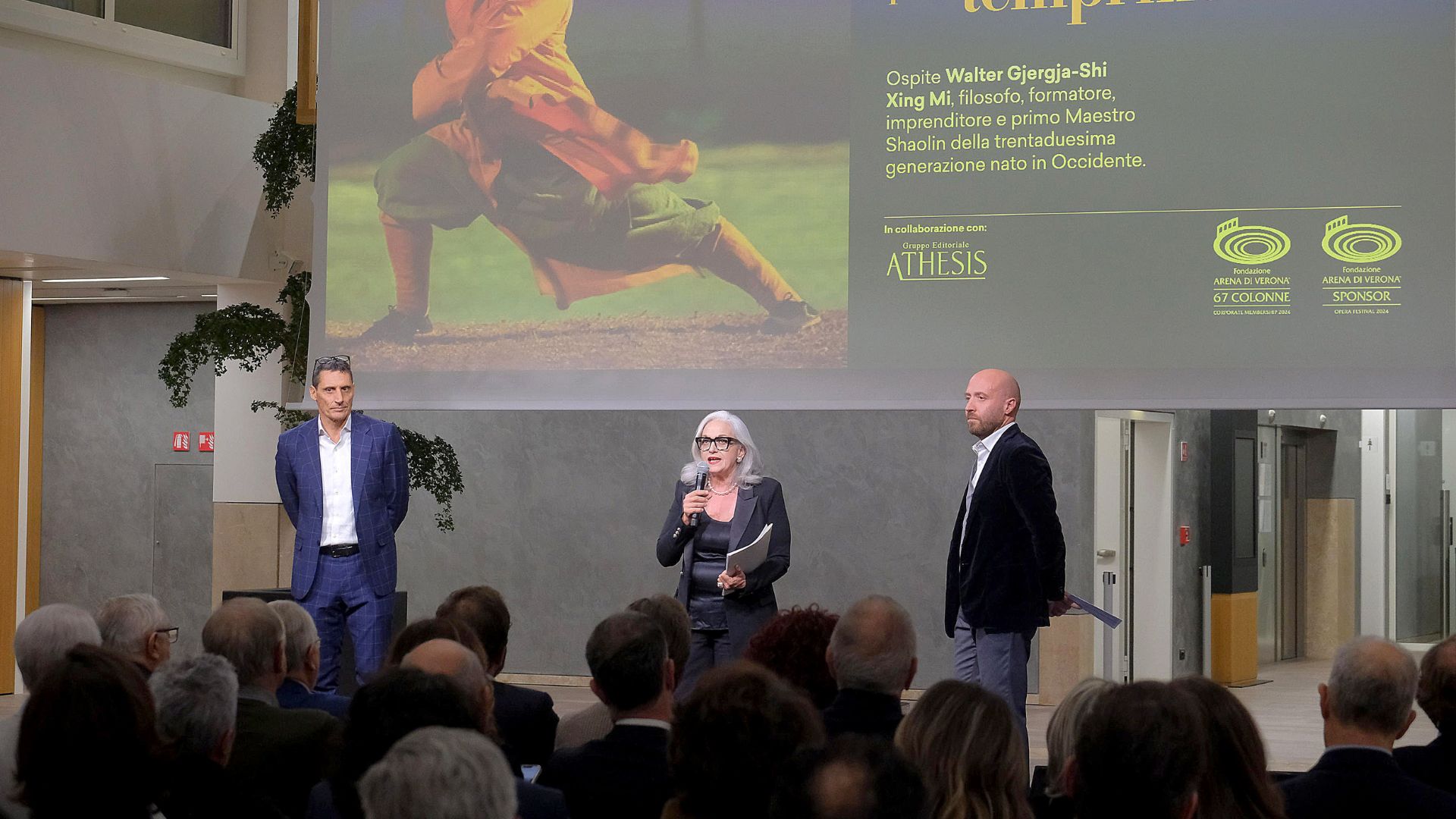 Saggezza antica per i tempi moderni. Se gli obiettivi da superare sono chiari, con un anticipo sempre maggiore per favorire il mercato internazionale, strategico è coinvolgere enti e sostenitori in “un viaggio in cui il percorso sia importante e godibile quanto la meta stessa”. A parlarne è stato Walter Gjergja, monaco Shaolin con il nome di Shi Xing Mi, che con la sua esperienza di vita unica ha dato spunti di saggezza antica, appresi nei monasteri cinesi, per i tempi moderni, nel quotidiano di persone e imprese, tema della serata. Annunciato anche l’approfondimento di spazio dedicato al racconto delle storie di mecenatismo di sponsor e Colonne, grazie alla media partnership con Athesis.