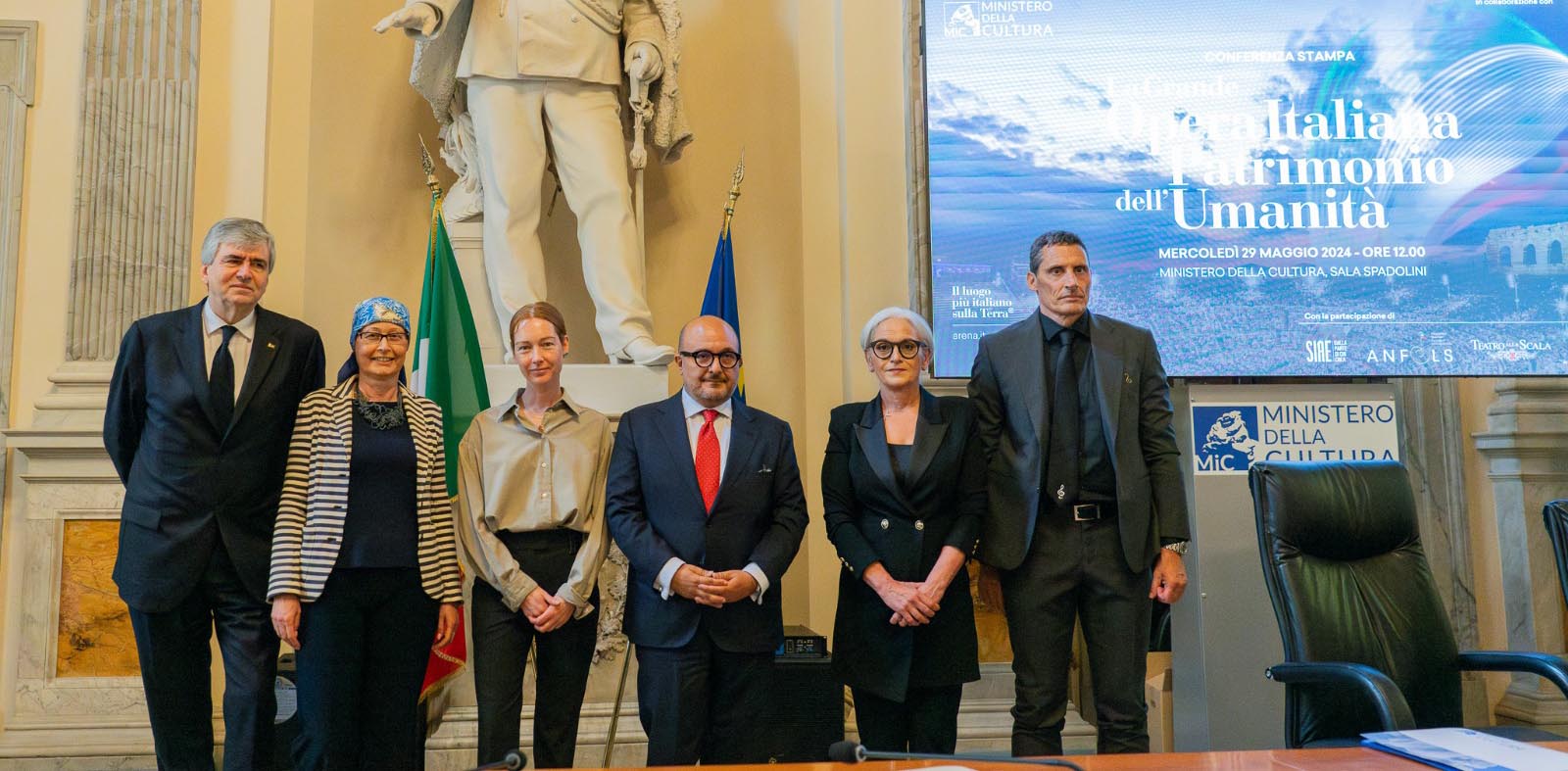 Bei der Pressekonferenz heute Morgen im italienischen Kulturministerium in Rom waren der Kulturminister Gennaro Sangiuliano, der Staatssekretär für Kultur Gianmarco Mazzi, die Oberintendantin der Fondazione Arena di Verona und Vizepräsidentin von ANFOLS Cecilia Gasdia, die Direktorin von Rai Cultura ed Educational Silvia Calandrelli und der stellvertretende künstlerische Leiter der Fondazione Arena di Verona Stefano Trespidi anwesend.