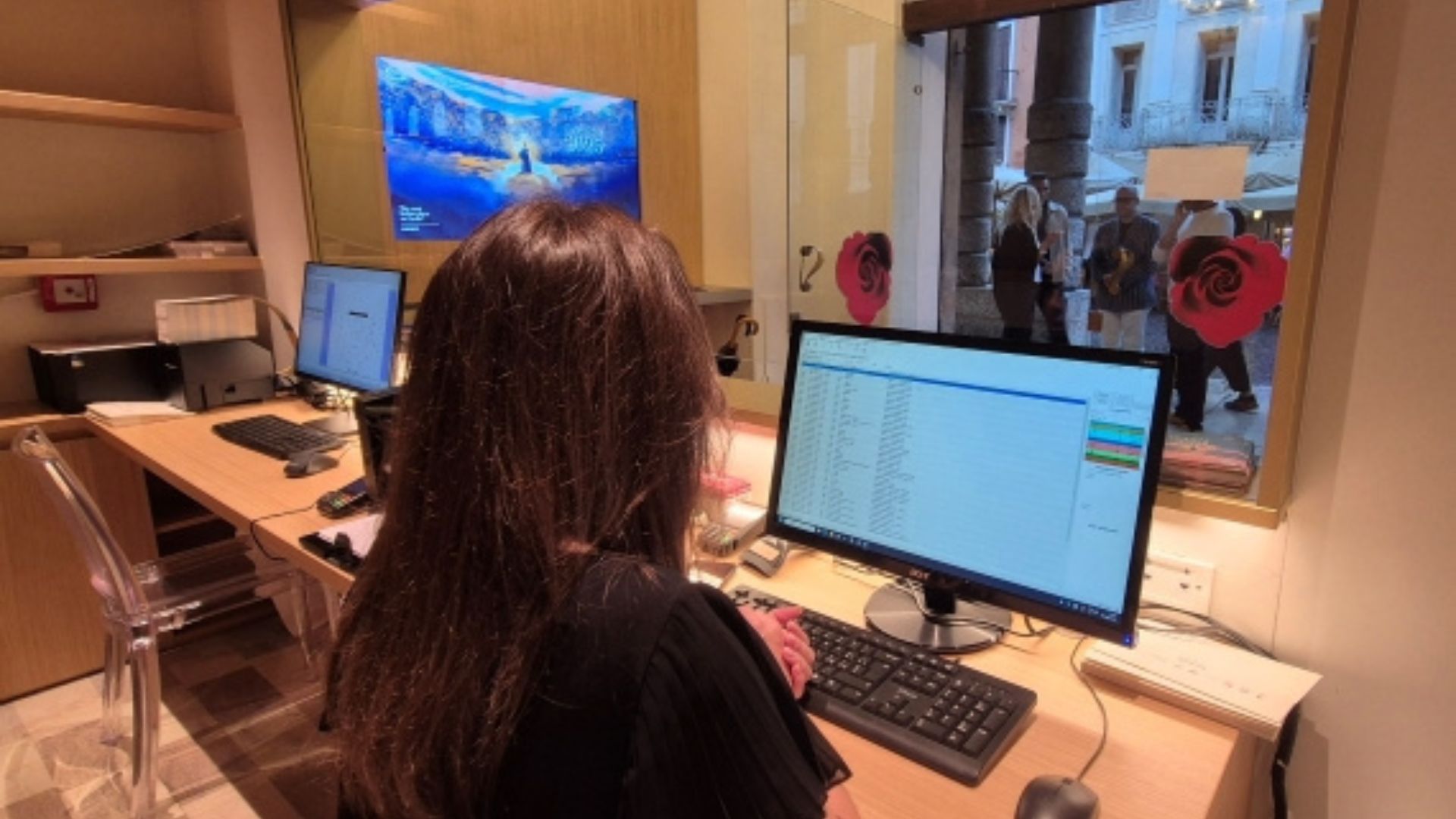 All’esterno i manifesti del festival fungono da richiamo per le persone che passeggiano, all’interno due schermi rivelano la magia dell’Arena Opera Festival e le singole produzioni con i cast. Al bancone gli addetti alla biglietteria, pronti a fornire informazioni sullo spettacolo del giorno.