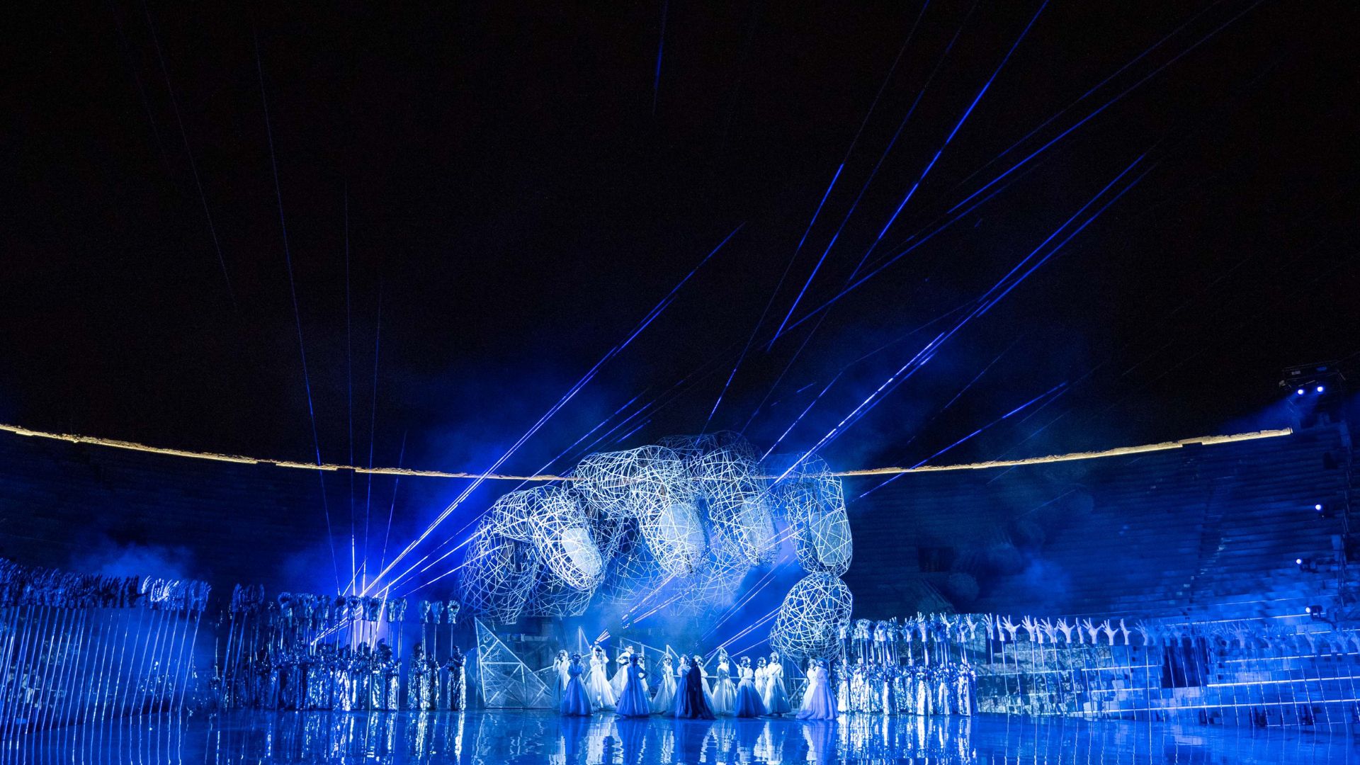 Un Antico Egitto simbolico, riletto dall’arte contemporanea, con giochi di luce, trasparenze, materiali innovativi, centinaia di mimi e figuranti che moltiplicano le forti emozioni dei personaggi verdiani: Aida nella sua veste “di cristallo” va in scena per un’ultima volta giovedì 1° agosto alle 21 con un cast internazionale di stelle dirette da Daniel Oren, alla guida dei complessi artistici di Fondazione Arena.