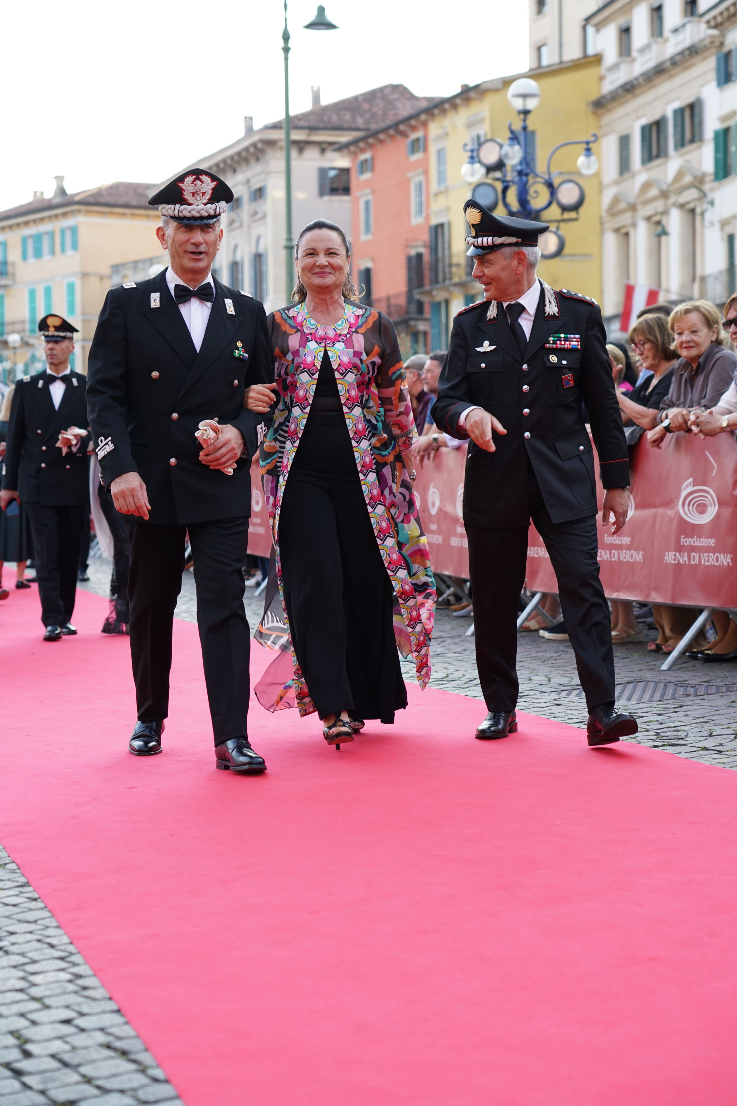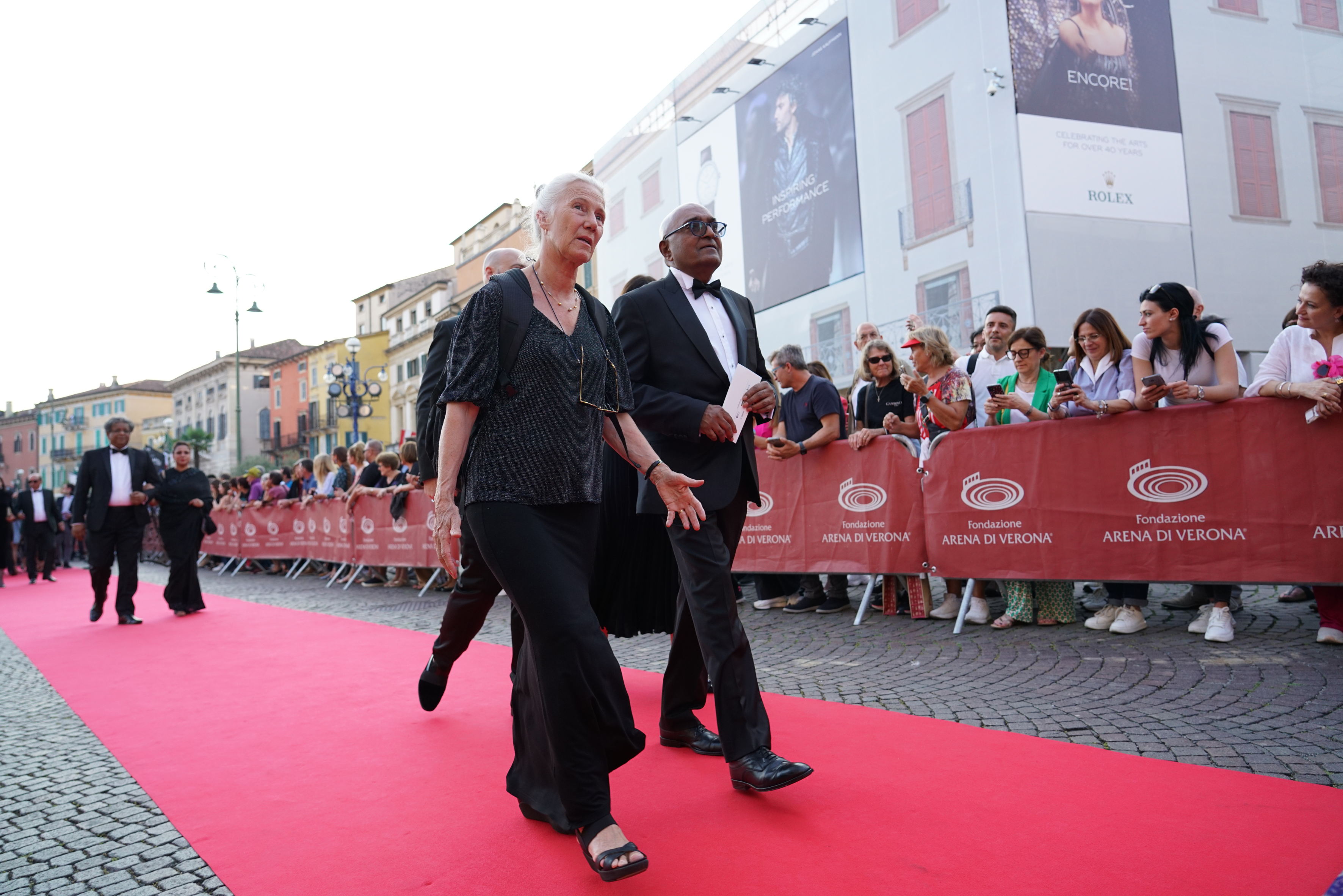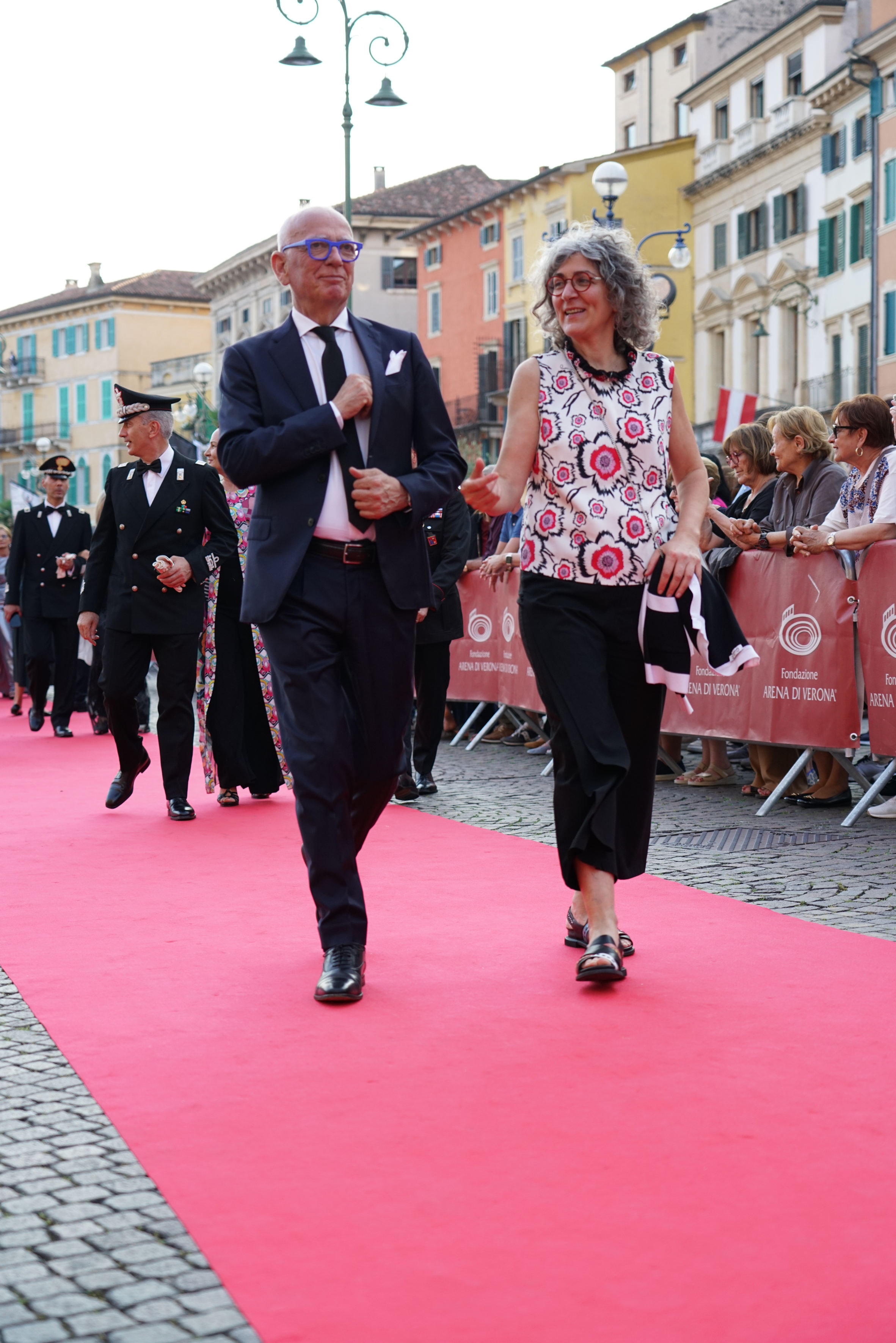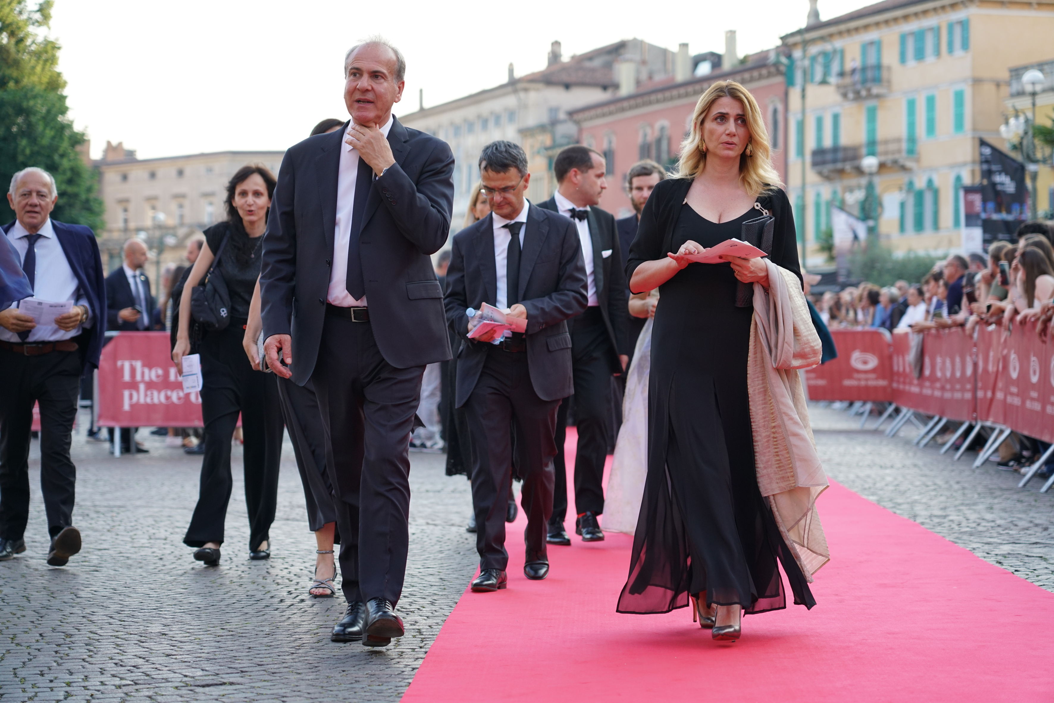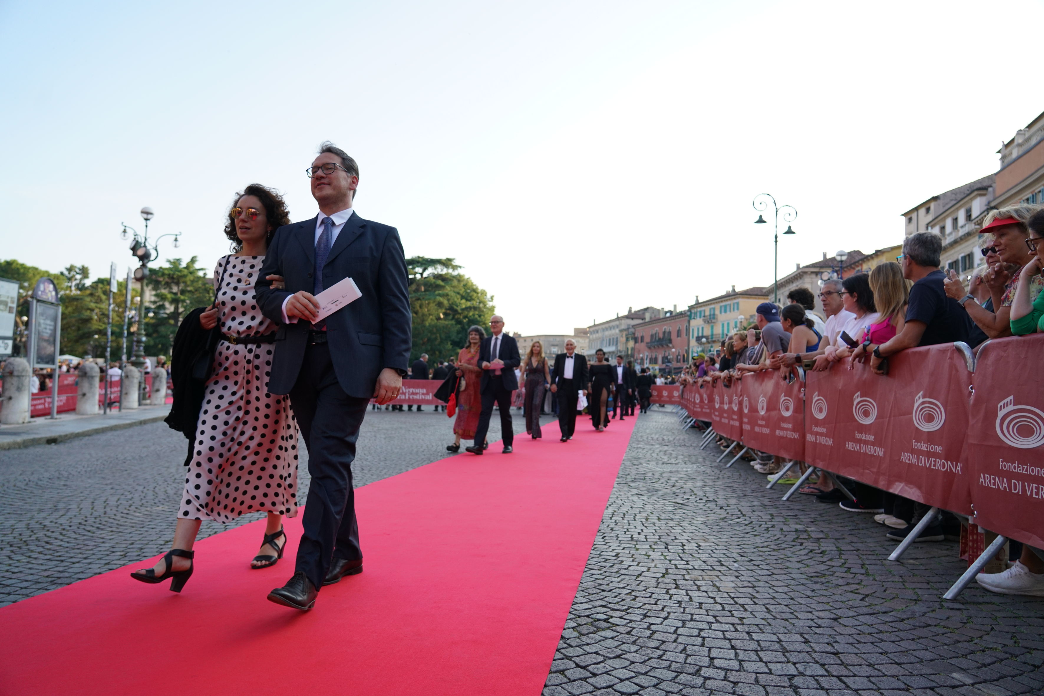 Lo spettacolo prima dello spettacolo. È dal red carpet che inizia a sprigionarsi la magia di ogni grande inaugurazione che si rispetti. L’apertura del 101° Arena di Verona Opera Festival poteva forse sottrarsi allo scintillante rito del tappeto rosso? Ovviamente no, come prova la sfilata di vip, politici, ambasciatori e ospiti speciali.