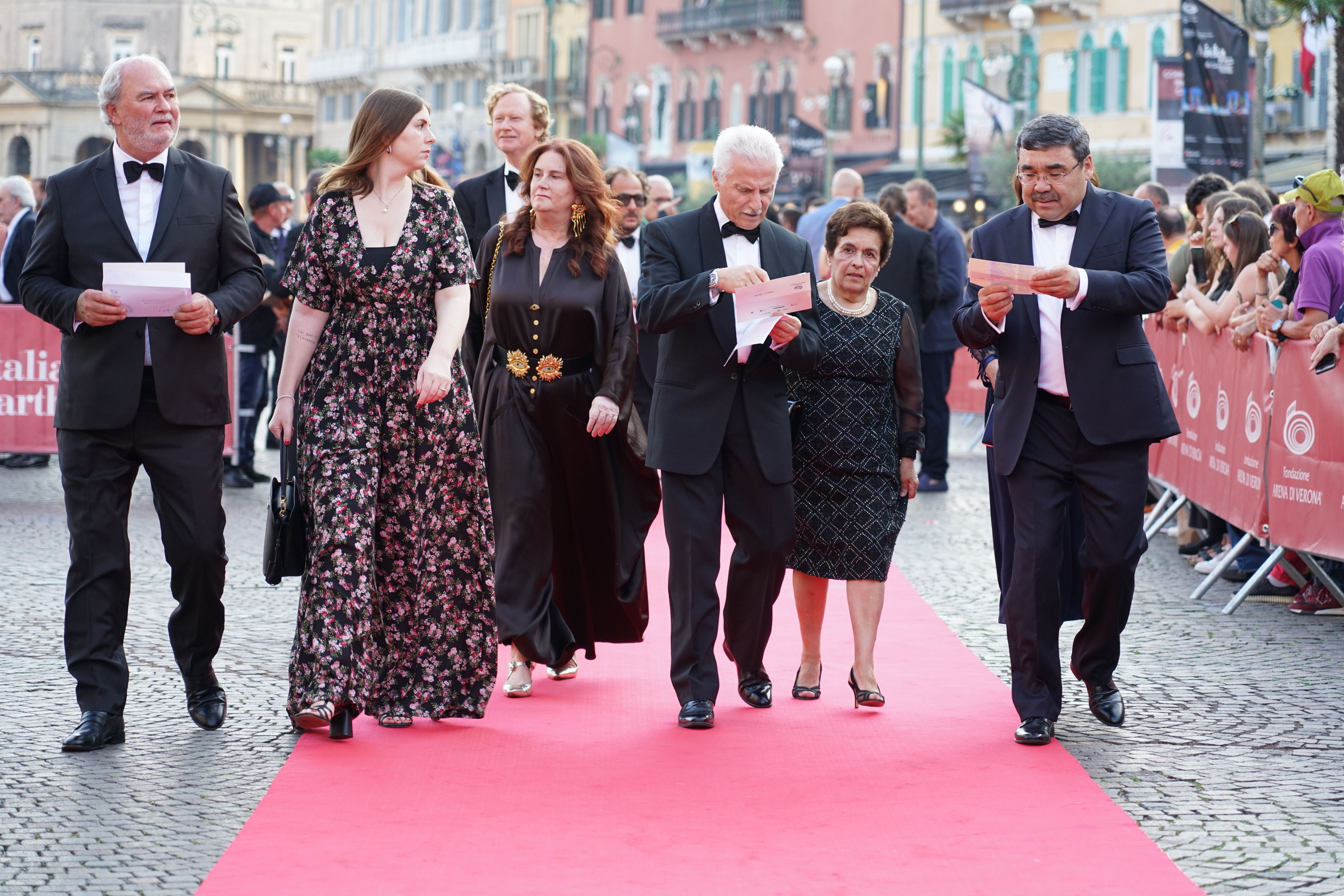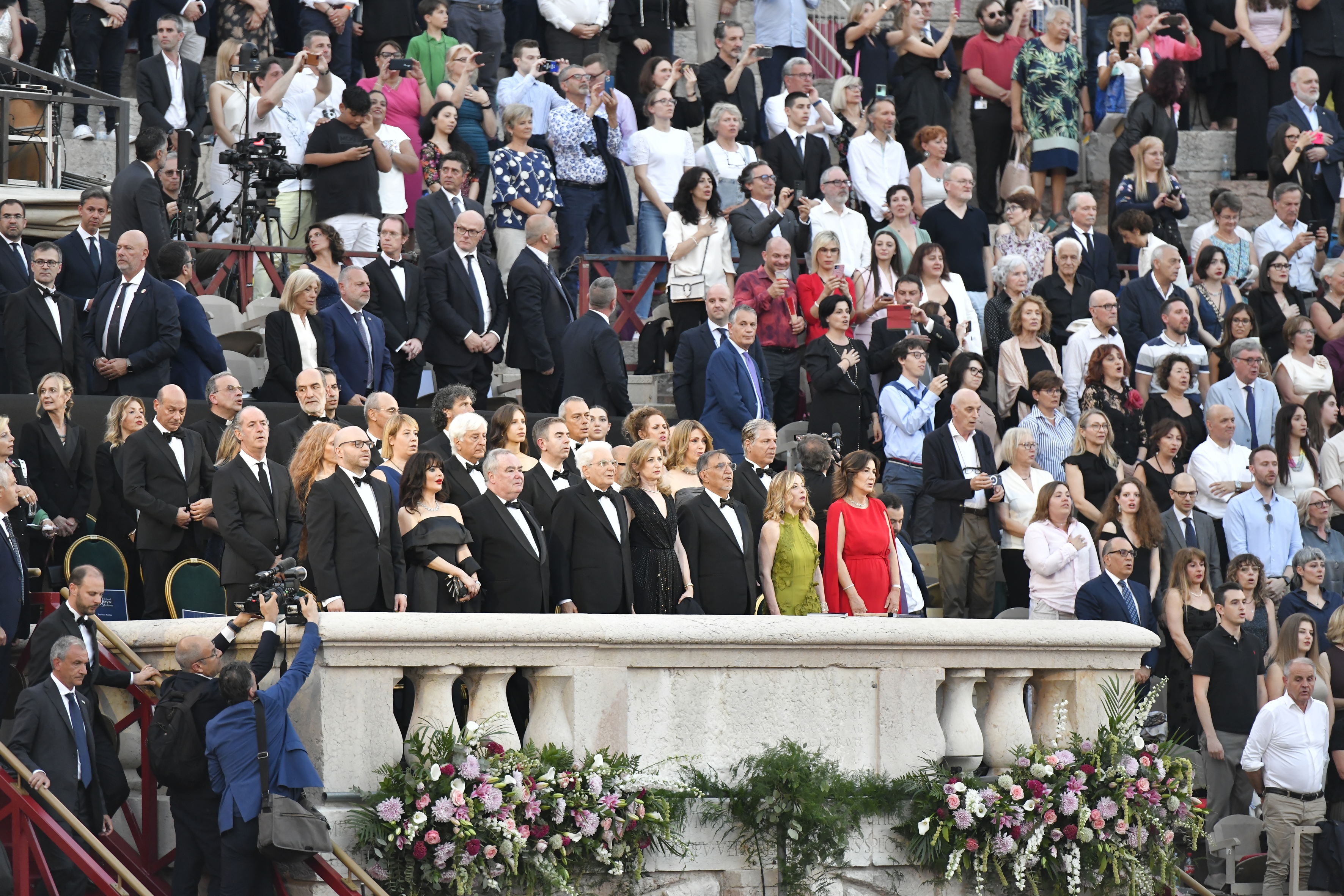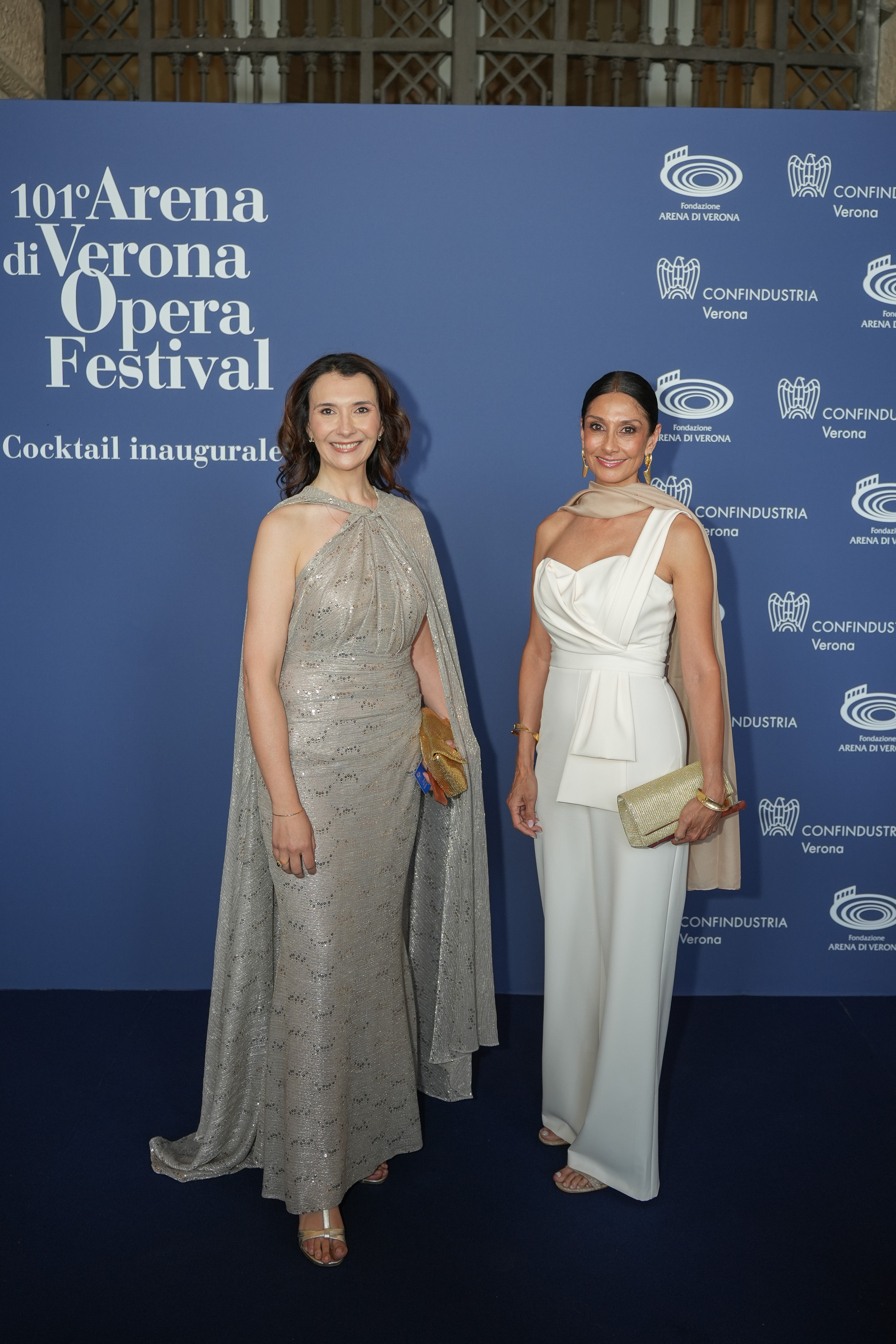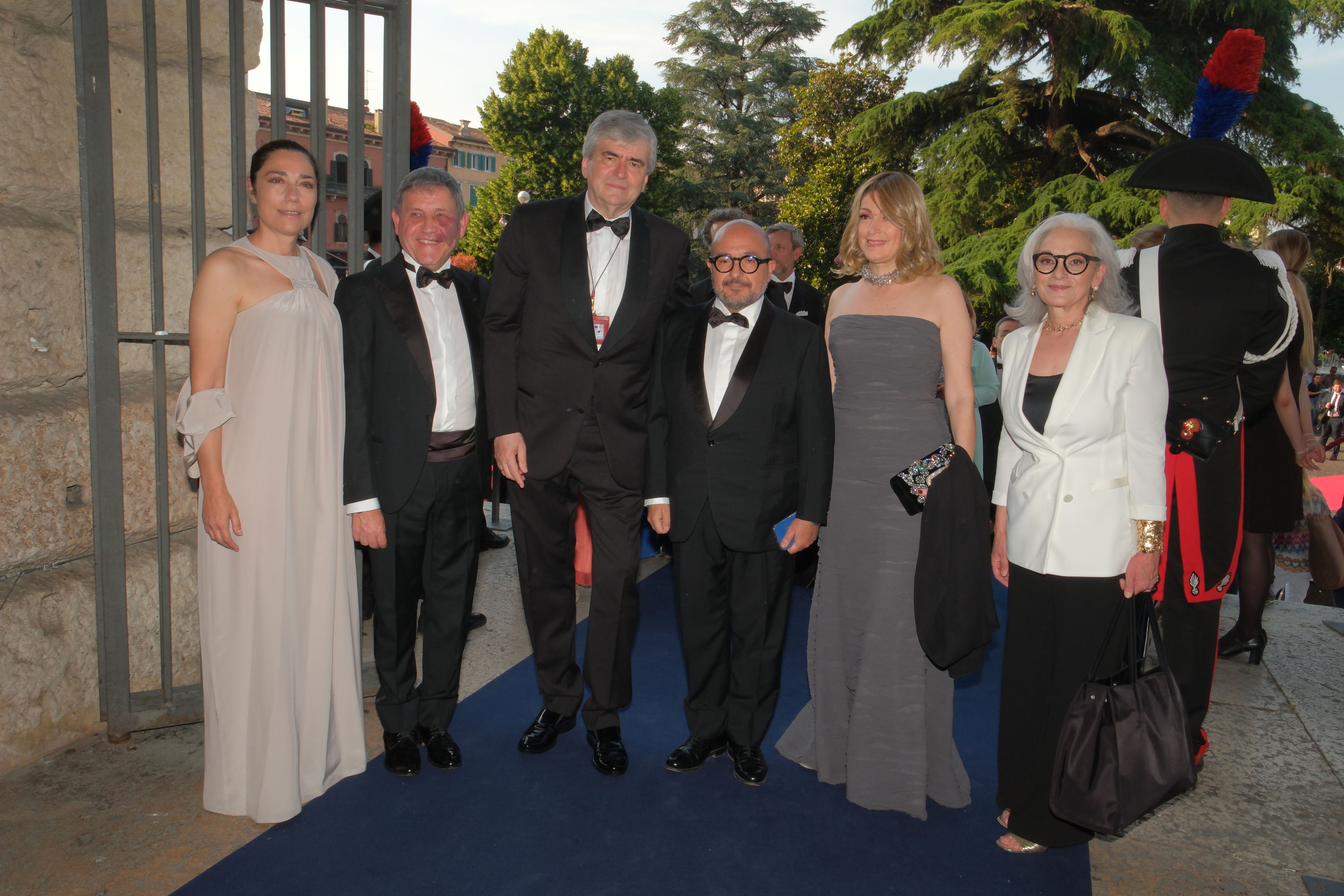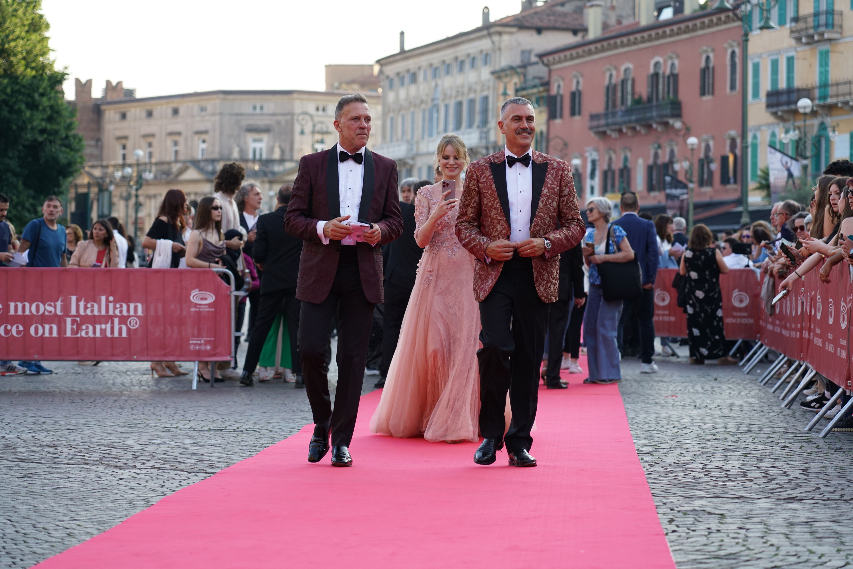 Lo spettacolo prima dello spettacolo. È dal red carpet che inizia a sprigionarsi la magia di ogni grande inaugurazione che si rispetti. L’apertura del 101° Arena di Verona Opera Festival poteva forse sottrarsi allo scintillante rito del tappeto rosso? Ovviamente no, come prova la sfilata di vip, politici, ambasciatori e ospiti speciali.