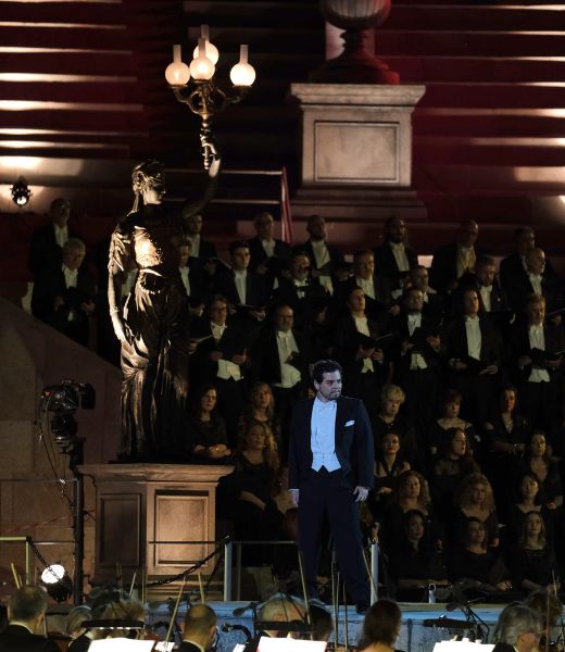 Due direttori d’orchestra (Riccardo Muti e Francesco Ivan Ciampa), sedici superstar dell’opera, due étoile della danza (Roberto Bolle e Nicoletta Manni), 160 professori d’Orchestra e 300 coristi provenienti dai più importanti teatri d’Italia. Aggiungete tre conduttori RAI d’eccezione (Cristiana Capotondi, Luca Zingaretti e Alberto Angela), l’Arena gremita... e avrete La Grande Opera Italiana Patrimonio dell’Umanità.
