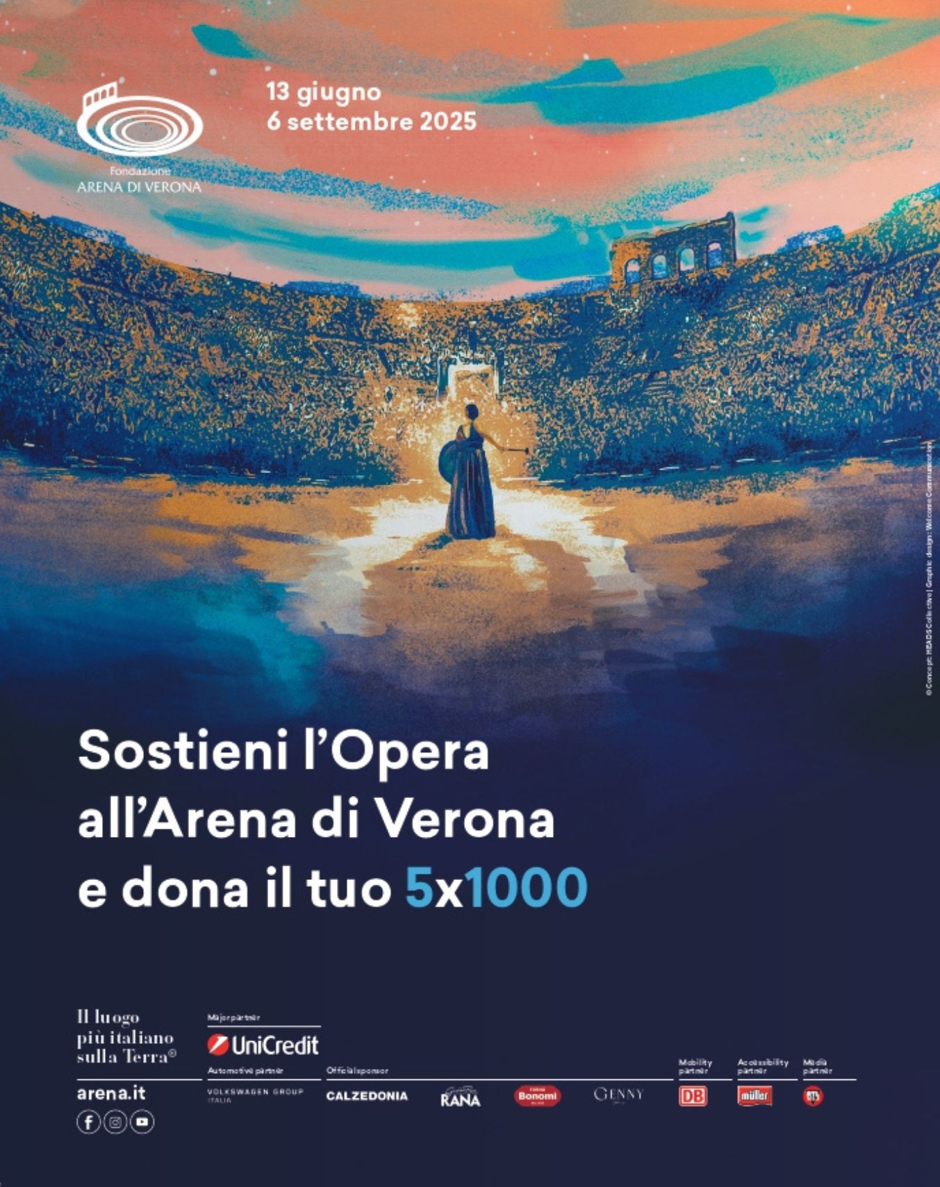 You can support the work of the Fondazione Arena di Verona by donating your 5x1000. We will be happy to have you as our guest during the Opera Festival, at a special rate.
