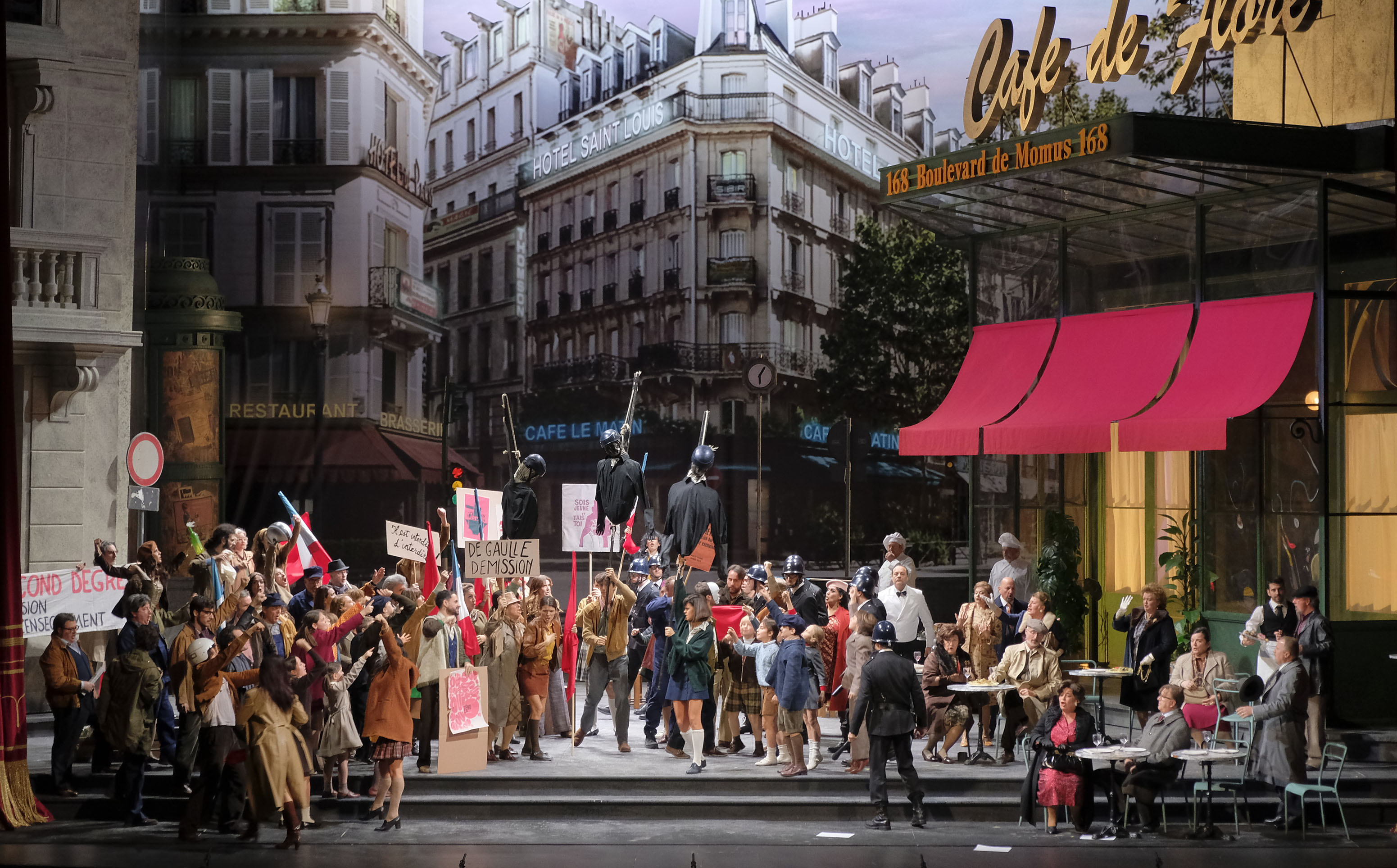 “Vietato vietare!”, “Godetevela senza freni!”, “La vita è altrove!” sono solo alcuni dei motti di allora, e di questi giovani in scena al Teatro Filarmonico, nella nuova produzione firmata da Stefano Trespidi che, pur proponendo echi e citazioni di fotografie d’epoca e film che hanno immortalato il ’68 (da Garrel a Bertolucci), resta fedele alla drammaturgia di Puccini.